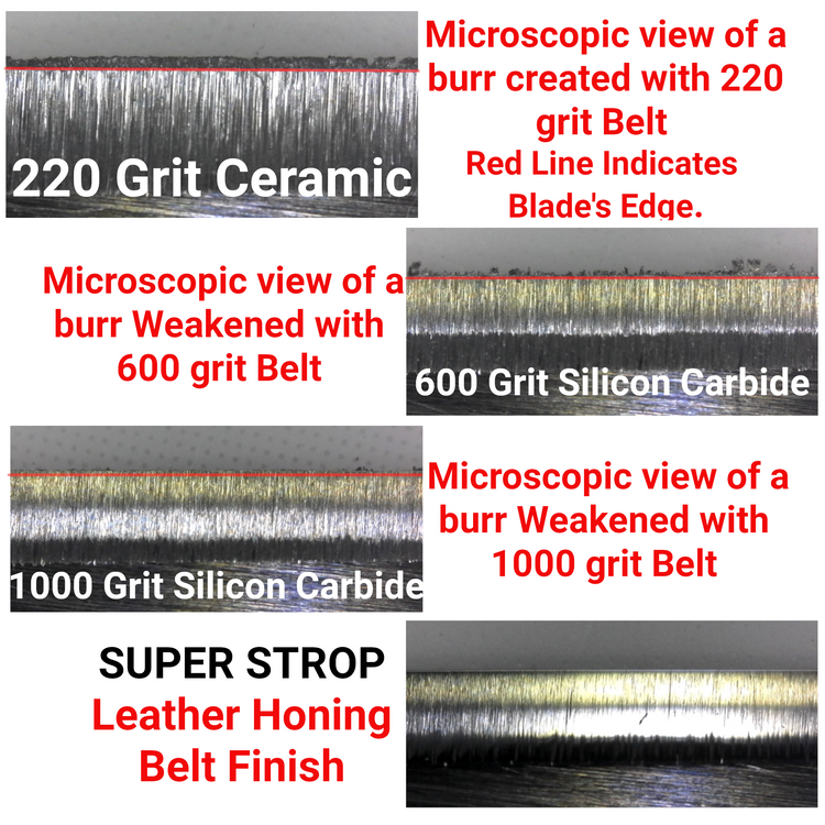 Let's take a look at what is happening to the edge of a knife's blade as we sharpen with a SUPER STROP Knife Sharpening Belt Kit